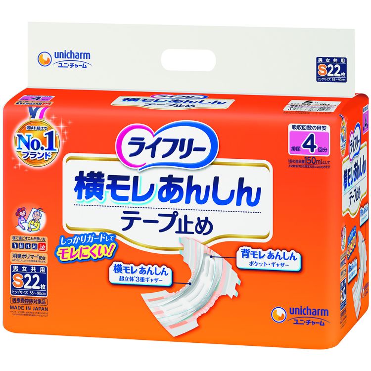 【メーカー直送品】ライフリー横漏れ安心テープ止めS S88枚(22枚×4)