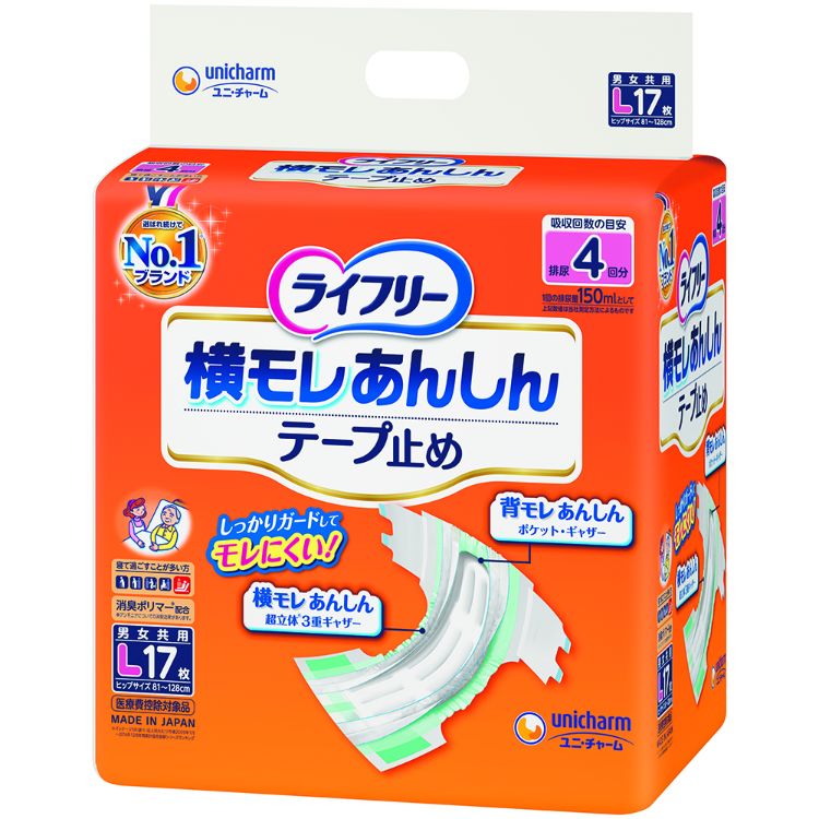 【メーカー直送品】ライフリー横漏れ安心テープ止めL L68枚(17枚×4)
