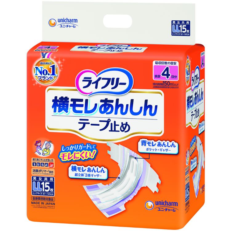 【メーカー直送品】ライフリー横漏れ安心テープ止めLL LL60枚(15枚×4)