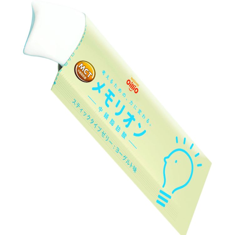 【メモリオン】は中鎖脂肪酸(MCT)が6g入ったヨーグルト味のやわらかなゼリーです。スティックタイプだから持ち運べて、いつでもどこでも手軽に食べられます。