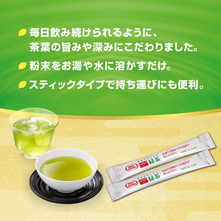 - 1日3回、食事とともに1回1本(7g)をコップ1杯(約100ml)のお湯又は水に溶かしてお飲みください。