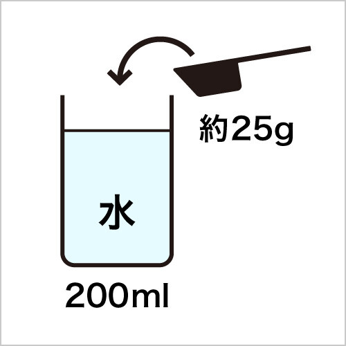 1.付属のスプーン3/4杯(約25g)に対し、水200mlの割合で溶かします。