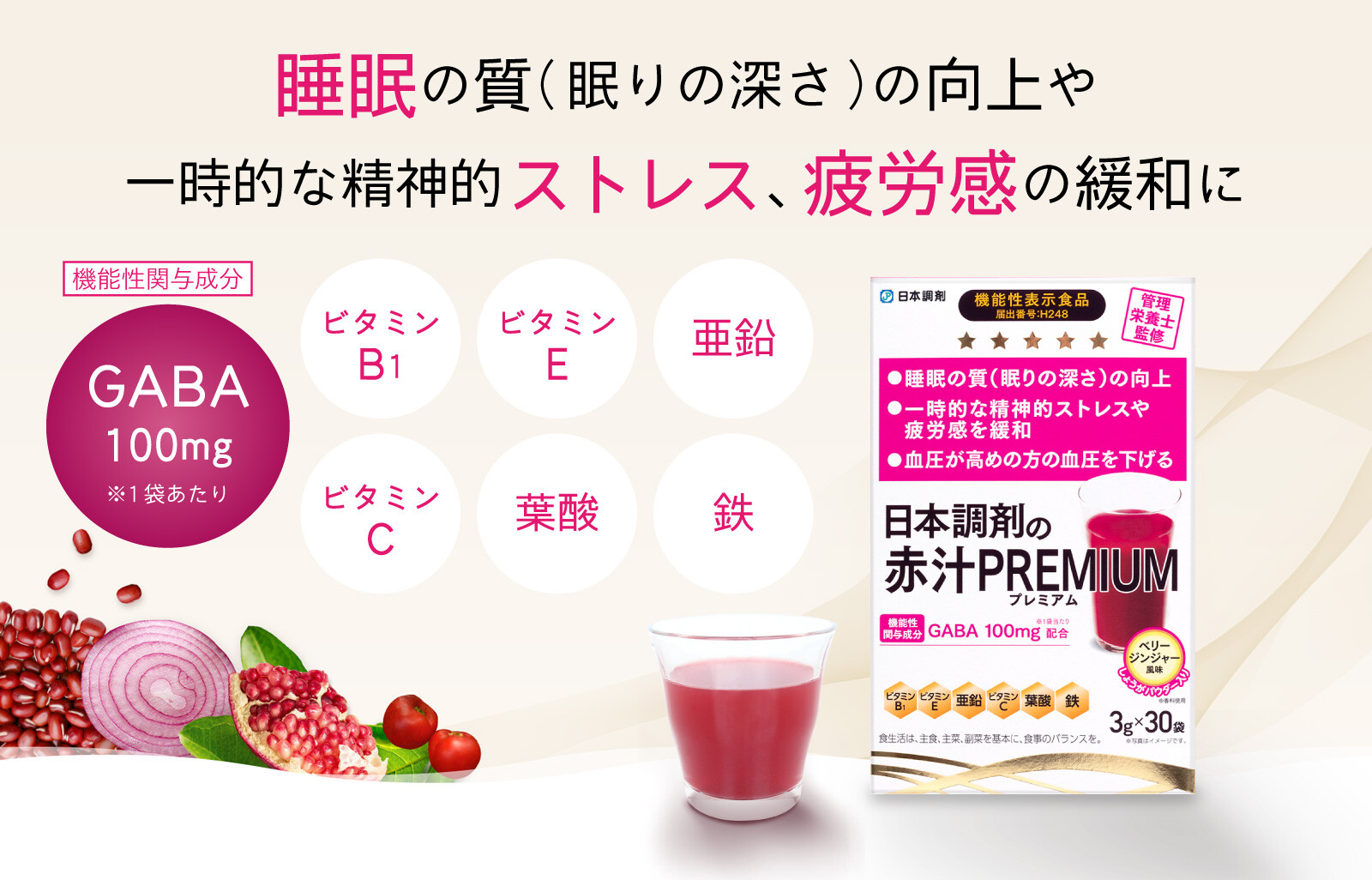 機能性関与成分 GABA100mg配合(1袋あたり)