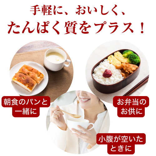 日々の食事に取り入れやすいポタージュだから、毎日こつこつ、たんぱく質を手軽に摂り続けることができます。