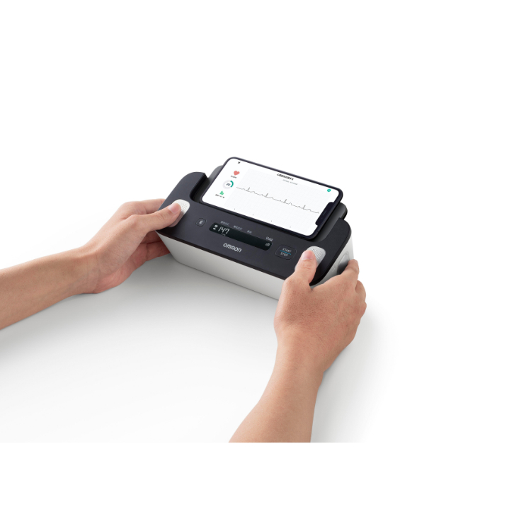 ■スマートフォンを本体に置いて、血圧測定と同時に、医療の診察にも活用できる心電図波形が記録できます。