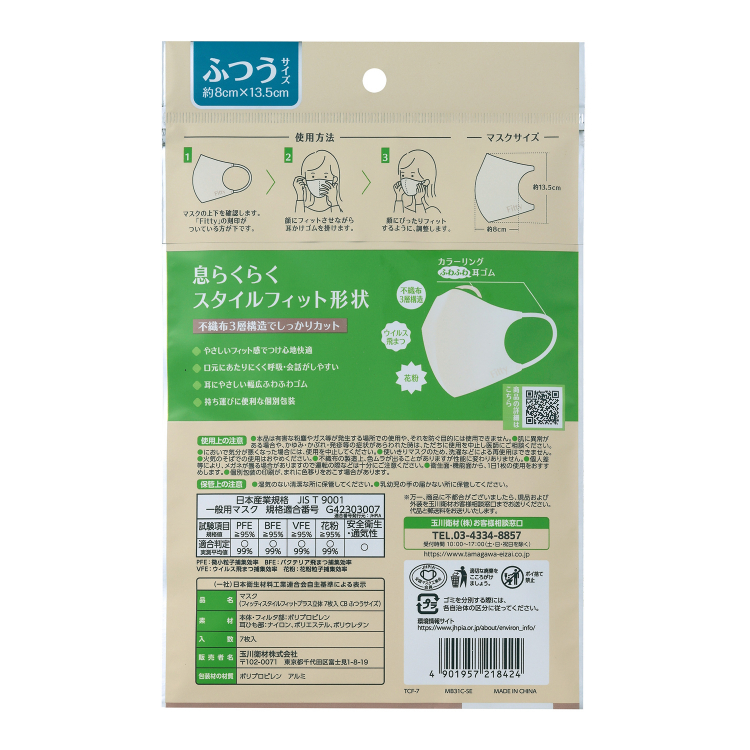 フィッティ スタイルフィットプラス立体 クリームベージュ ふつうサイズ 7枚入