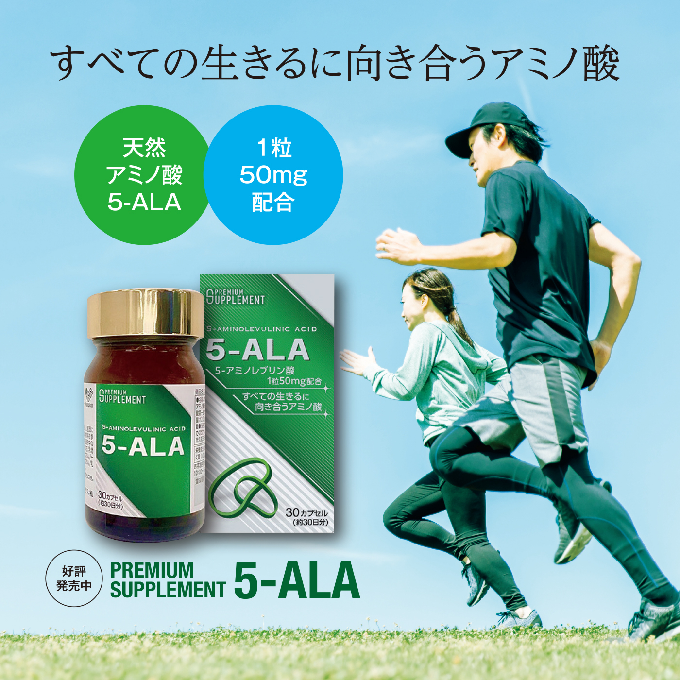 健康な毎日と活動を支える重要な栄養素【5-ALA(5-アミノレブリン酸)】を効率よく摂取できるように、1粒に50mgの5-ALAを配合したサプリメント。5-アミノレブリン酸(5-ALA)とは?