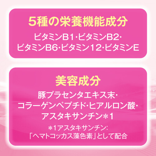 - オリーブ油(スペイン製造)、スッポン粉末(国内製造)、ビタミンE含有植物油、乳酸菌(殺菌)末、豚プラセンタエキス末、コラーゲンペプチド/ゼラチン、グリセリン、ミツロウ、ヒアルロン酸、ヘマトコッカス藻色素、ビタミンB1、ビタミンB2、ビタミンB6、植物レシチン(大豆由来)、酸味料、ビタミンB12