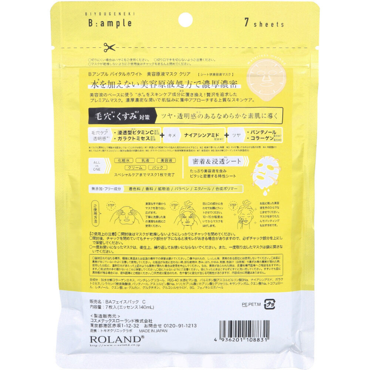 Bアンプル バイタルホワイト 美容原液マスク クリア 7枚入