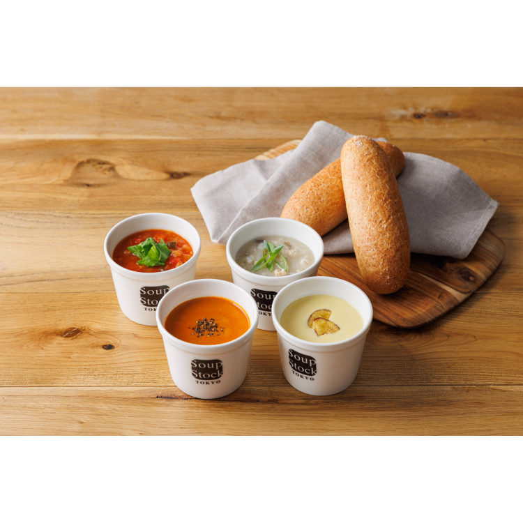 食べるスープの専門店“Soup Stock Tokyo”のスープとお店で人気のパンを詰合せたセットです。
