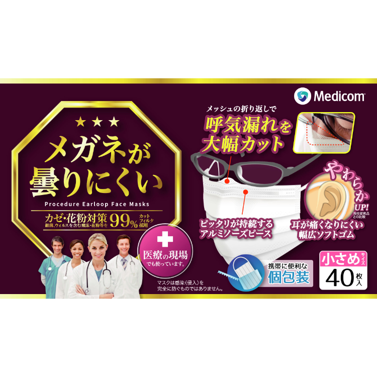メガネが曇りにくいマスク小さめ個包装 40枚